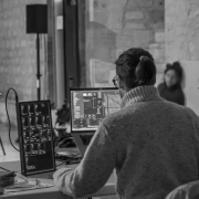 Actuellement, l’écriture de la pièce est terminée. Prochaine étape : mixage des 500 pistes que contient la pièce.